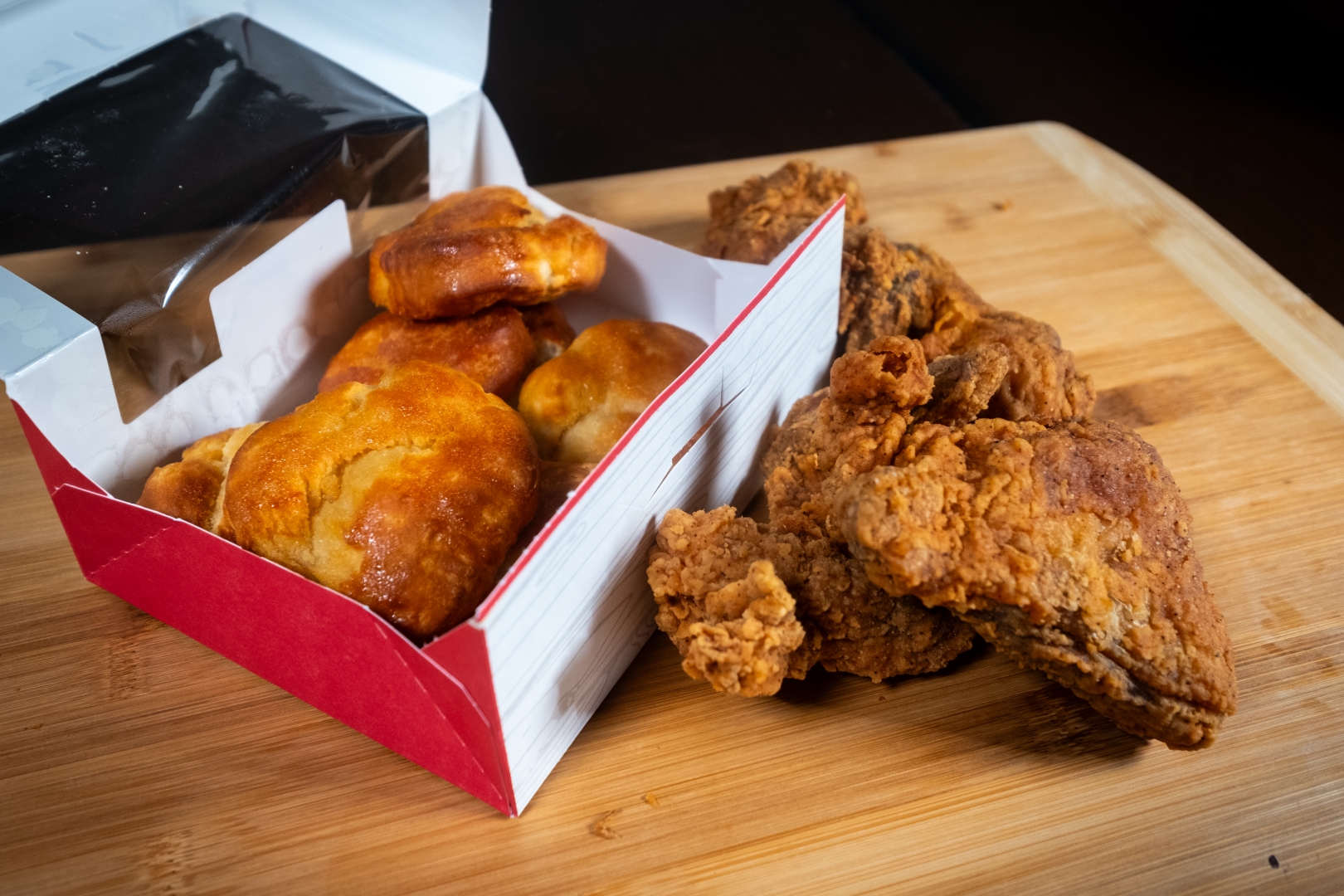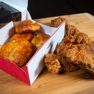 Order online in advance or swing by our convenient drive-thru for a quick and satisfying meal. And don’t forget the sweet finishing touch — every order comes with a freshly baked biscuit drizzled with pure honey goodness.